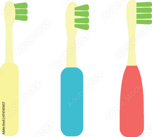 © Sharea, Fototapeta premium Colorful toothbrushes standing upright promoting oral hygiene and dental care for healthy teeth and gums
