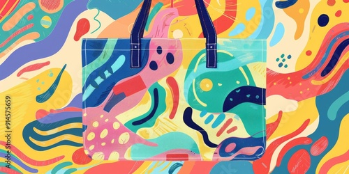 © Murda, Obraz premium Colorful tote bag with abstract pattern.