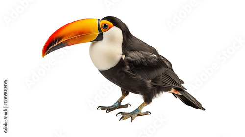 © Aqib, Naklejka premium Colorful Toucan Bird Tropical Exotic Wildlife, Vibrant Beak and Wings for Nature Themes, isolated on transparent background.
