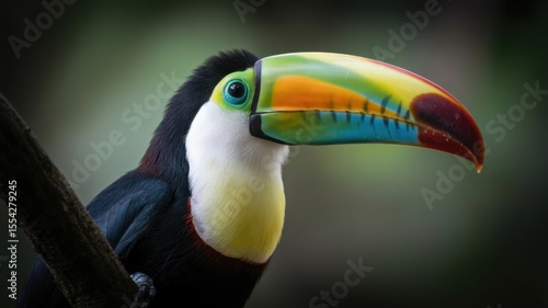 © Yuriy, Fototapeta premium Colorful toucan perched on branch in lush greenery