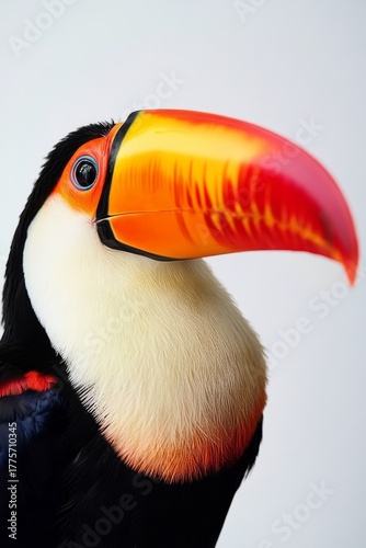 © Paul, Obraz premium Colorful Toucan Portrait Close-up with Massive Beak Detail Isolated on Bright Background
