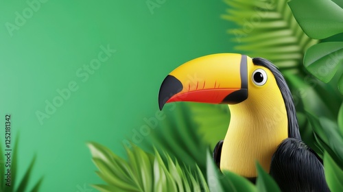 Naklejka premium Colorful Toucan Surrounded by Lush Green Tropical Leaves