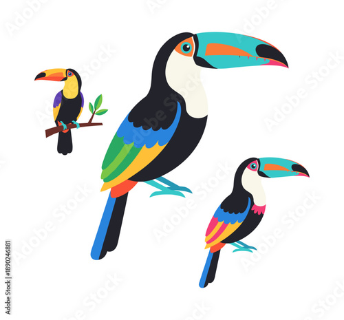 © ProVector, Fototapeta premium Colorful toucans bird family wildlife isolated background