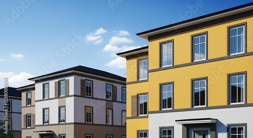 © Aksapix Studio, Fototapeta premium Colorful Townhouses Under A Sunny Sky
