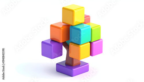 Obraz premium Colorful toy blocks stacked in tree shape playful arrangement on white...