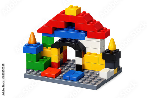 Fototapeta premium Colorful toy brick construction with a transparent background image.