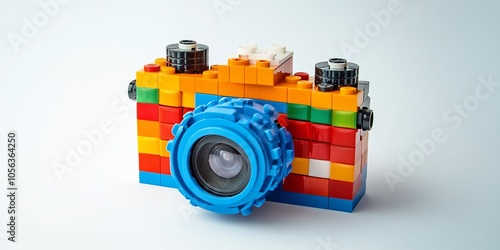 © DIAHIMAGESNEW, Fototapeta premium Colorful toy camera built from colorful blocks.