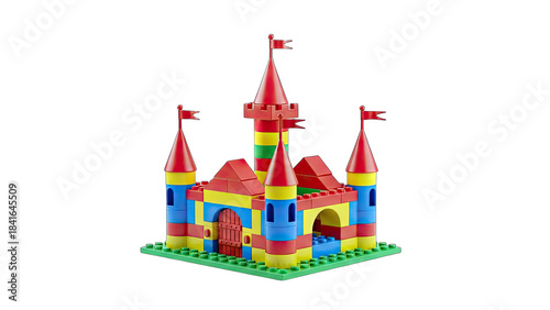 Fototapeta premium Colorful Toy Castle Constructed on White Background