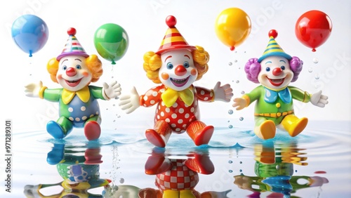 Obraz premium Colorful Toy Clowns with Balloons on Water
