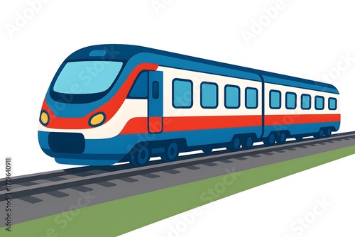 © ninakosh, Fototapeta premium Colorful train traveling along railway tracks in a vibrant graphic design