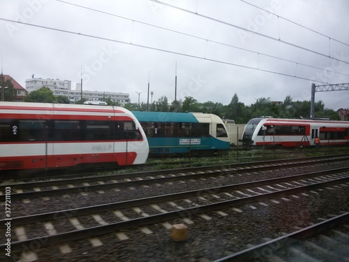 © Zhanna, Fototapeta premium Colorful trains on the railway
