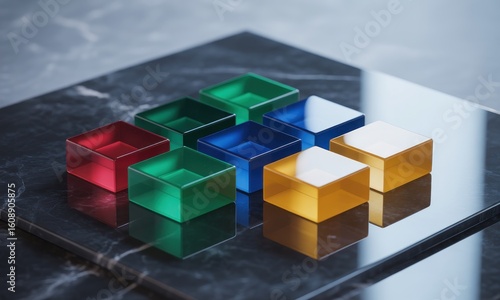 Obraz premium Colorful translucent cubes arranged on a dark marble surface