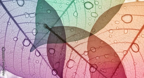 © Vidoy, Fototapeta premium Colorful Transparent Leaves with Water Drops