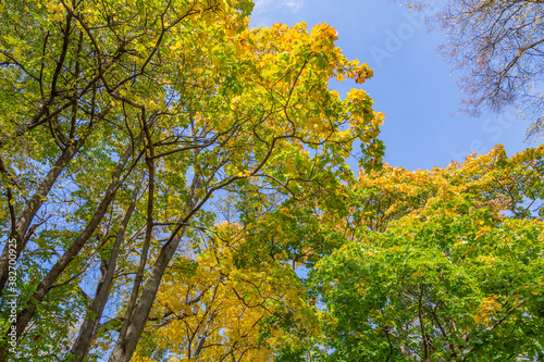 © ironstuffy, Naklejka premium Colorful tree branches with bright foliage in golden autumn season