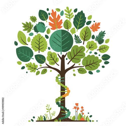 Obraz premium Colorful tree with green leaves and decorative elements in nature