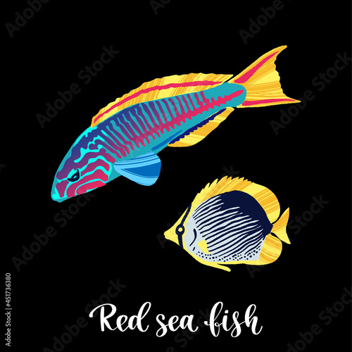 Obraz premium Colorful tropical fish of the Red Sea, Pacific and Indian Oceans, lives near...