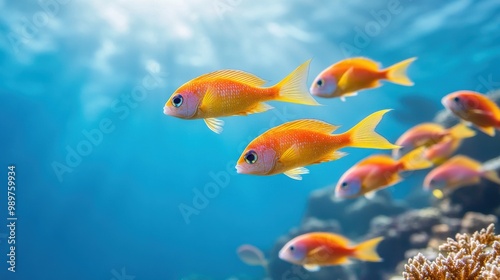 Fototapeta premium Colorful Tropical Fish Swimming in Clear Ocean Water