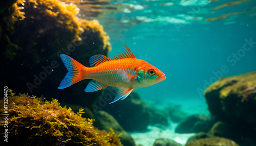 Naklejka premium Colorful Tropical Fish Swimming in Ocean Water
