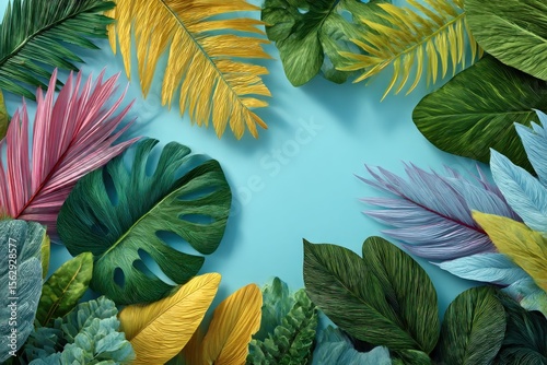 © Arif, Fototapeta premium Colorful tropical leaves on a light blue background (1)