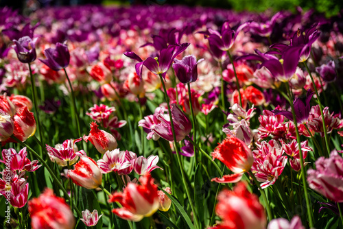 Fototapeta premium Colorful tulip flowerbed in full bloom