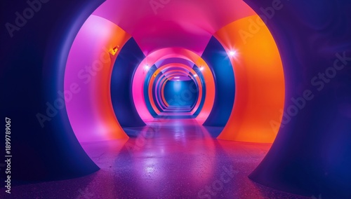 Fototapeta premium Colorful Tunnel With Circular Patterns and Bright Lights in Modern Art Space