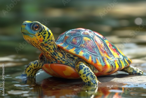 © designerkotapati, Obraz premium colorful turtle in 3d by generative ai