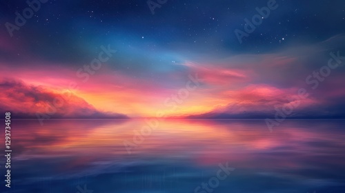 © lestari, Fototapeta premium Colorful twilight sky reflected on calm water