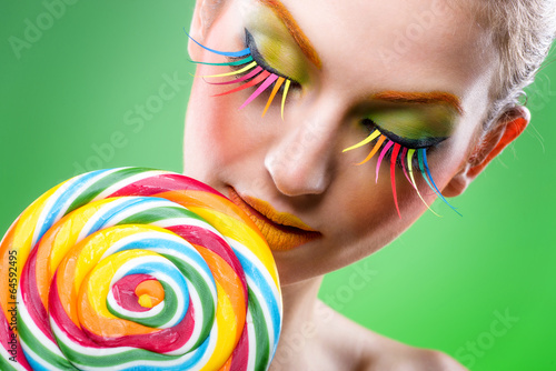 © Zsolnai Gergely, Naklejka premium Colorful twisted lollipop, colorful fashion makeup