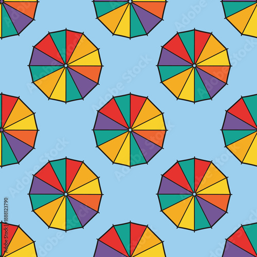 Obraz premium Colorful Umbrella Seamless Pattern Light Blue