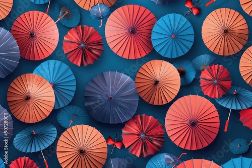 Naklejka premium Colorful umbrellas stacked on a blue background, perfect for illustration or...