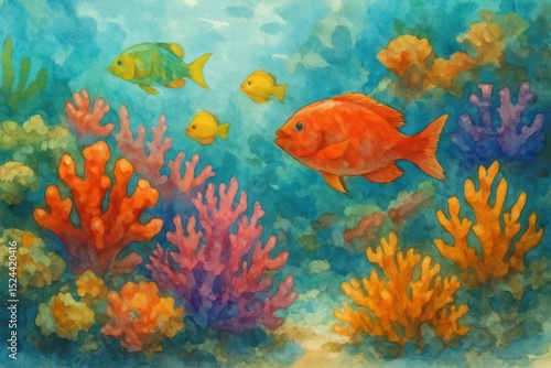 Naklejka premium Colorful underwater coral reef teeming with vibrant fish swimming through a...