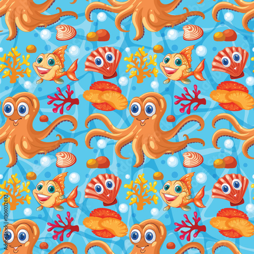 Obraz premium Colorful Underwater Creatures Seamless Pattern