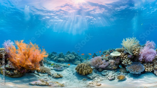 Naklejka premium Colorful underwater scenes featuring vibrant coral reefs, teeming with marine...