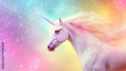 Fototapeta premium Colorful unicorn-themed background with a vibrant rainbow, glitter texture,...