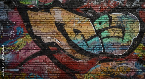 Obraz premium Colorful urban graffiti art on brick wall featuring vibrant patterns and...