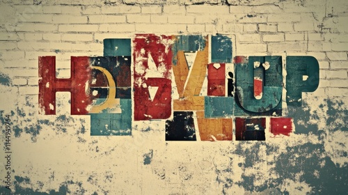 Fototapeta premium Colorful Urban Mural Art with Text on Grungy Wall Background