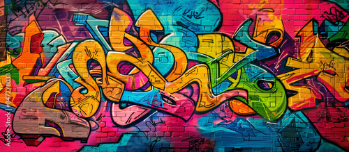 Obraz premium Colorful urban wall graffiti banner background. Creative city street art...