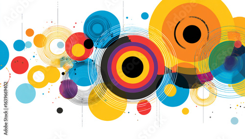 Obraz premium Colorful vector design of abstract circles and rings on white background