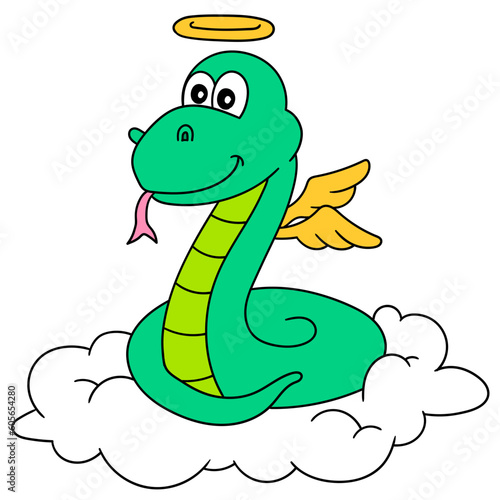 Fototapeta premium Colorful vector illustration of a cute cartoon snake angel