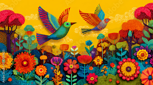 © Arif, Obraz premium Colorful vector illustration of birds flying in the sky