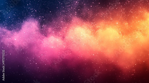 Naklejka premium Colorful, vibrant galaxy with swirling hues of pink, orange, and purple, adorned with numerous sparkling stars