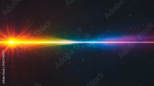 Naklejka premium Colorful, vibrant light beam streaking across a dark space.