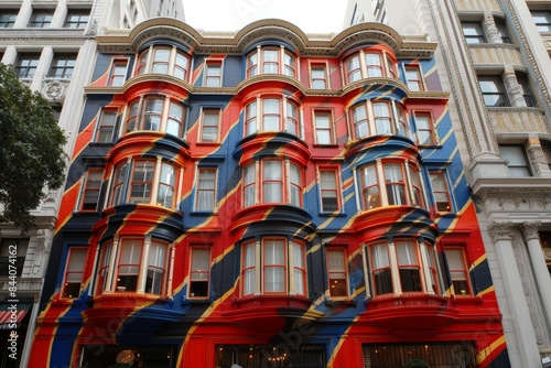 © denklim, Fototapeta premium Colorful Victorian Building With Bay Windows on a Sunny Day