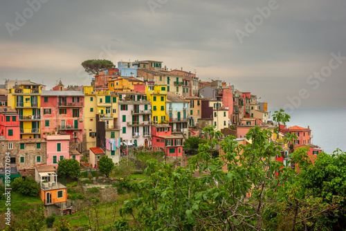 Obraz premium Colorful village of Corniglia upon a hill, Cinque Terre, Liguria, Italy