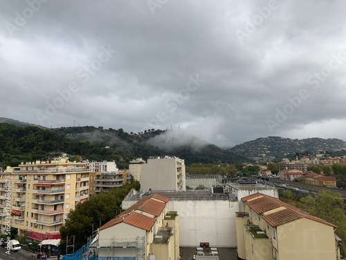© Natalia, Obraz premium Colorful Villagescape with Mountain Vista
