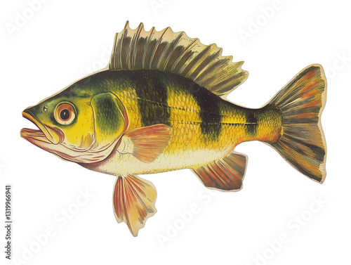 © zphoto83, Fototapeta premium Colorful vintage fish cut-out from a magazine showcasing intricate details and vibrant hues on a plain background