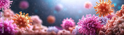 Fototapeta premium Colorful virus cells under microscopic view