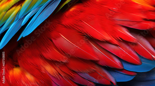 © MdMaruf, Obraz premium Colorful vivid close up of bright exotic Scarlet macaw. Generative ai