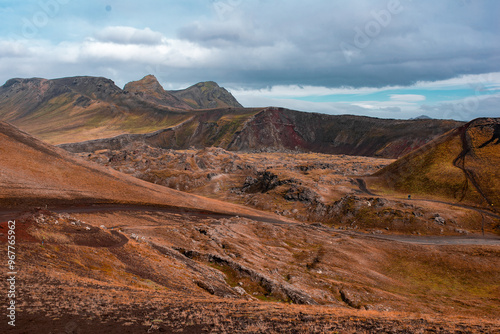 © eduardpopik, Fototapeta premium Colorful Volcanic Landscape with Winding Dirt Road