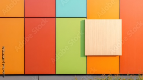 © Solikah, Obraz premium Colorful wall with wood panel
